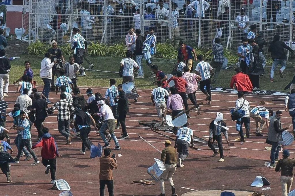 Torcedores invadem gramado e arremessam objetos em evento de Messi na Índia