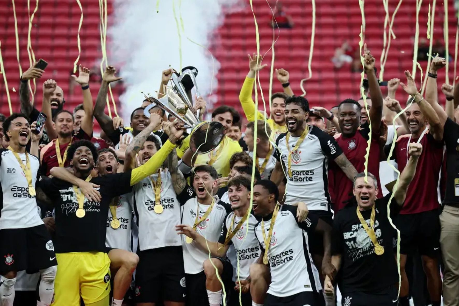 No segundo tempo, um gol de Memphis Depay foi anulado, mantendo a intensidade da partida. A vitória corintiana foi selada apenas aos 52 minutos da etapa final, quando o centroavante Yuri Alberto protagonizou um lindo lance ao driblar o goleiro Rossi e finalizar para o gol vazio, definindo o placar. A histórica conquista foi testemunhada por um público recorde de 71.244 torcedores no Mané Garrincha, marcando um novo recorde para a arena.
