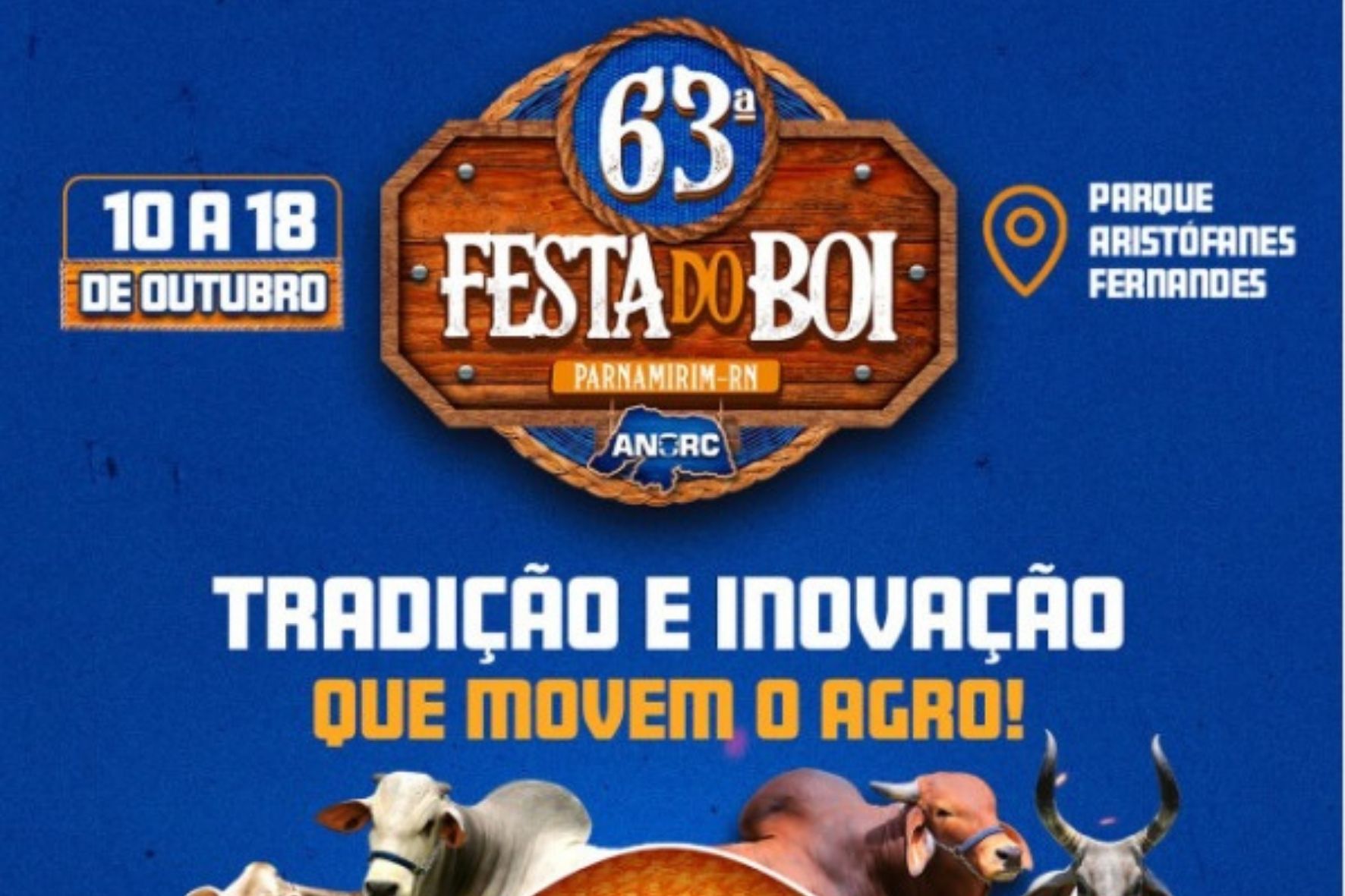 A 63ª Festa do Boi será realizada de 10 a 18 de outubro, no Parque Aristófanes Fernandes, em Parnamirim.