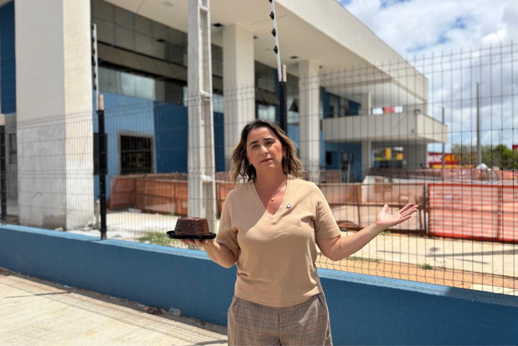 A vereadora Samanda Alves realizou, nesta terça-feira (30), uma ação simbólica para denunciar duas obras inauguradas pela Prefeitura de Natal em dezembro de 2024, mas que seguem sem funcionamento: o Mirante do Mar, na Zona Leste, e o Hospital Municipal de Natal (Hospital São Padre Pio), em Cidade Satélite. Para marcar um ano das inaugurações sem que os equipamentos tenham servido à população, a parlamentar levou um bolo aos dois locais.