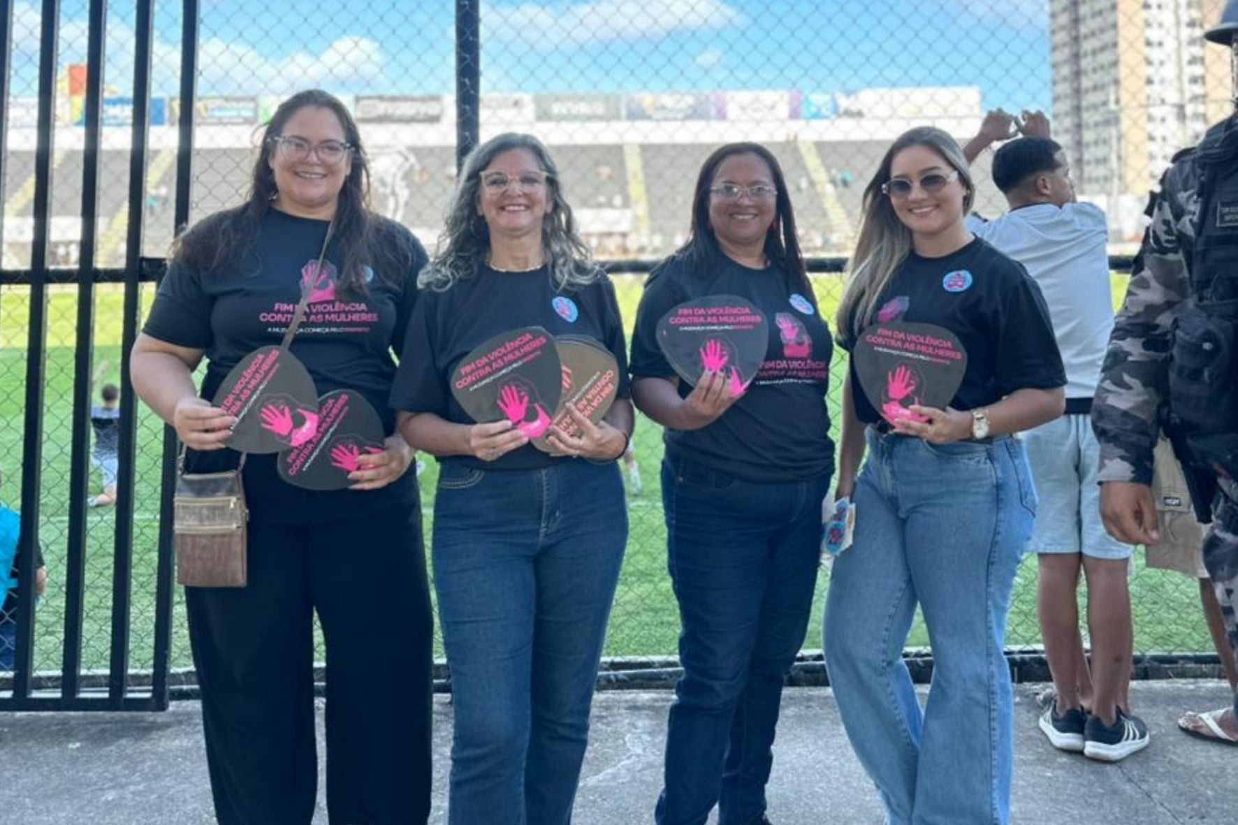A secretária de Estado das Mulheres, da Juventude, da Igualdade Racial e dos Direitos Humanos, Júlia Arruda, destacou a importância de ocupar espaços historicamente masculinos para ampliar o alcance das campanhas. “O público dos estádios é majoritariamente masculino e é imprescindível estarmos nesses ambientes para dialogar, conscientizar e promover mudanças de comportamento. Precisamos falar sobre respeito, igualdade e enfrentamento à violência onde as pessoas estão”, afirmou.