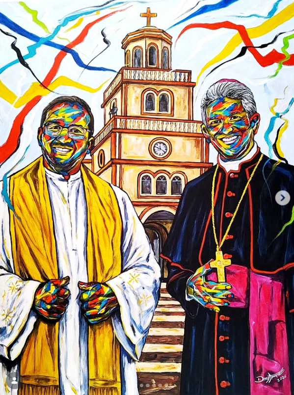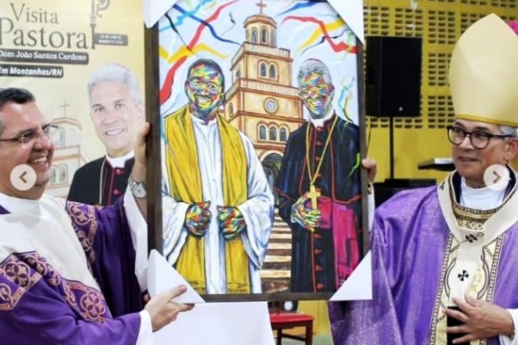 Recentemente, o artista recebeu um convite especial: produzir uma obra retratando duas importantes figuras da Igreja Católica — o arcebispo de Natal, Dom João Santos Cardoso, e o conhecido Padre Zezinho. O trabalho foi desenvolvido como uma homenagem à trajetória religiosa e à influência espiritual de ambos.
